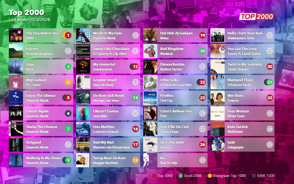 Wat het denken in albums betreft, dat doen ze cynisch gezegd bij NPO Radio 2 ook. Hieronder de 23 DM tracks in de Top 2000 keuzelijst van dit jaar. Een paar jaar geleden was ik in eerste instantie aangenaam verrast dat ze heel Some Great Reward erin hadden gezet. Maar even later hoorde ik anderen klagen dat dat voor meer albums gold en waarschijnlijk pure luiheid of desinteresse is geweest. Hoe goed ik de albumtracks Stories Of Old en Lie To Me ook vind, ze zijn totaal kansloos als de singles de lijst al niet halen.